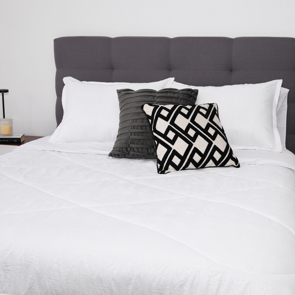 Sumérgete en la suavidad más lujosa con nuestro edredón Doris con textura tridimensional. Su diseño floral en relieve, inspirado en la naturaleza, crea una atmósfera serena y elegante en tu dormitorio. Disponible en blanco puro e ivory, este edredón aporta un toque de sofisticación a cualquier espacio. Confeccionado con materiales de la más alta calidad, te envolverá en una sensación de confort durante toda la noche. ¡Elige la talla perfecta para tu cama (Full, Queen o King) y transforma tu habitación en un oasis de tranquilidad!.