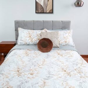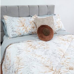Suave edredón de diseño hojas otoñales en tonos neutros, que aporta calidez y elegancia. TALLA TWIN : INCLUYE UNA FUNDA DE ALMOHADA . TALLA FULL, QUEEN Y KING : INCLUYE DOS FUNDAS DE ALMOHADA.